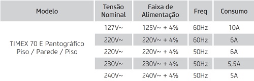 * Os tempos padronizados permitem a realização de radiografias conforme estabelecido pela Norma NBR IEC 60.601-2-7.